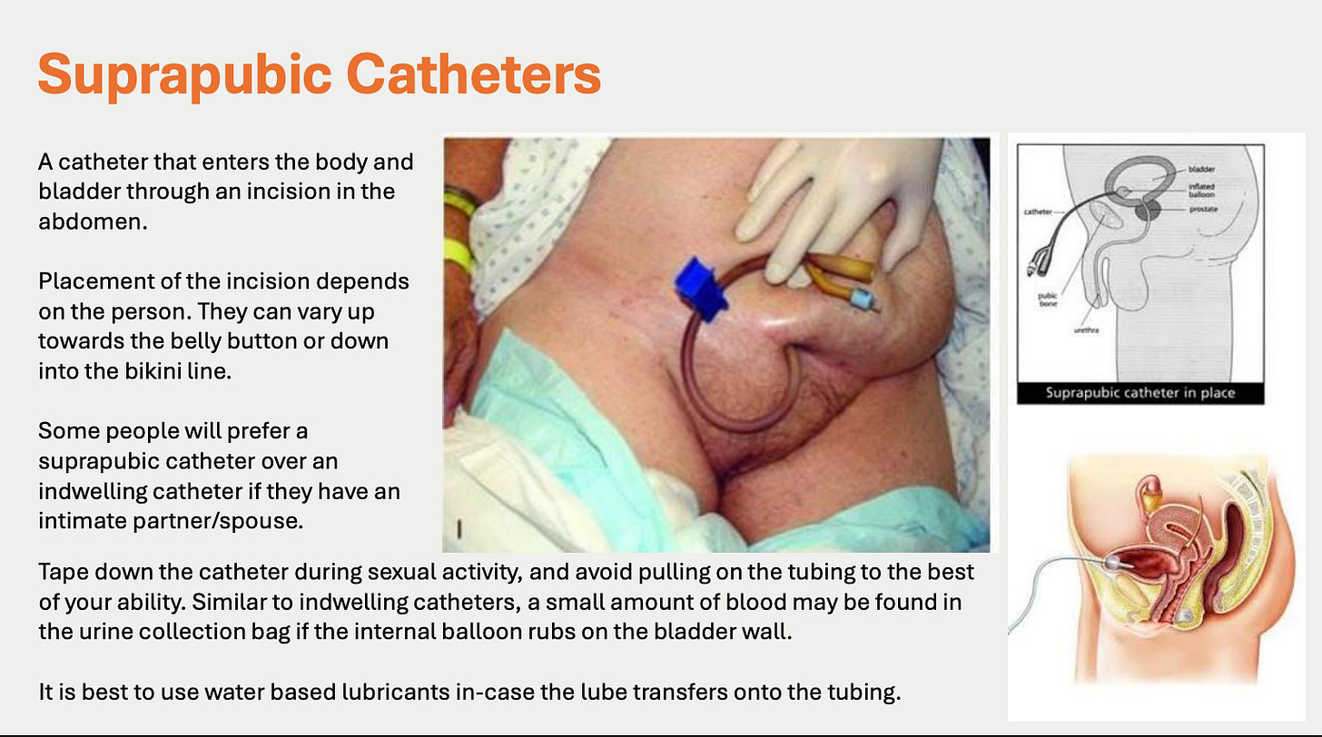 Some people will prefer a suprapubic catheter over an indwelling catheter if they have an intimate partner/spouse.
