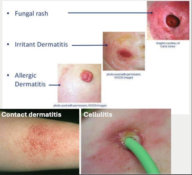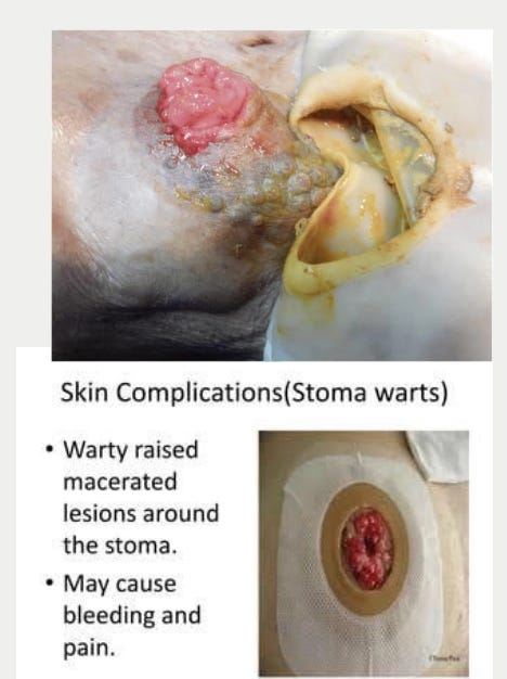 Warts and herpes can also be found on a stoma site. Both are contagious.