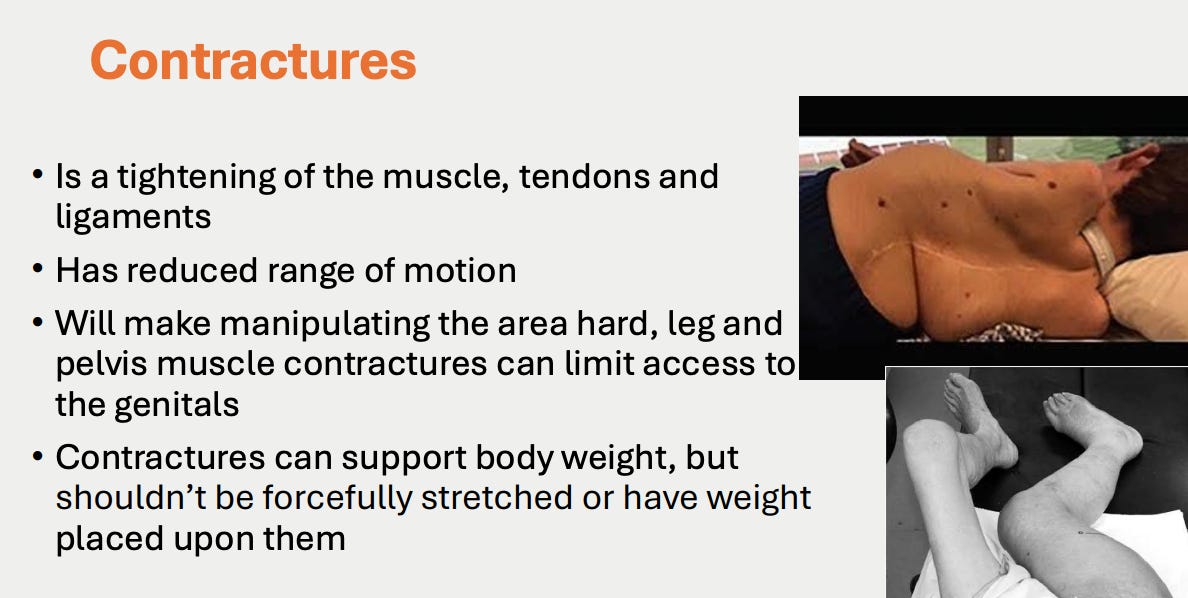 Contractures can support body weight, but shouldn’t be forcefully stretched or have weight placed upon them.