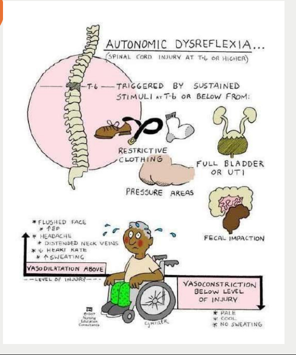 An abnormal reaction to intense/painful stimulation from below a T6 or higher SCI, for example, ejaculation/orgasm.