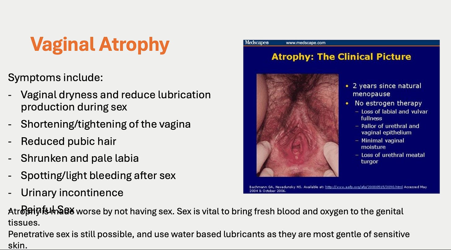 Atrophy is made worse by not having sex. Sex is vital to bring fresh blood and oxygen to the genitals. Penetrative sex is still possible, and use water based lubricants as they are most gentle of sensitive skin.